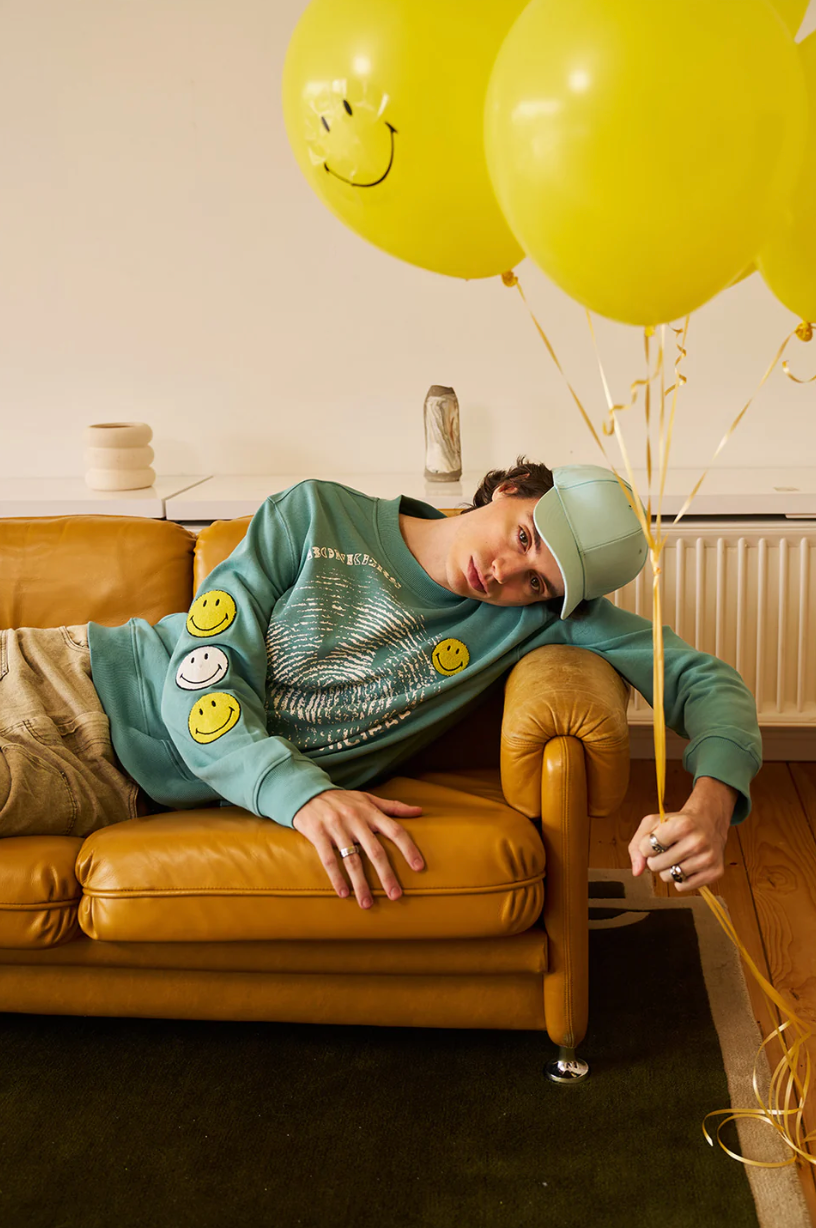 SMILEY ORIGINALS CHENILLE PATCH SLEEVES SWEATSHIRT